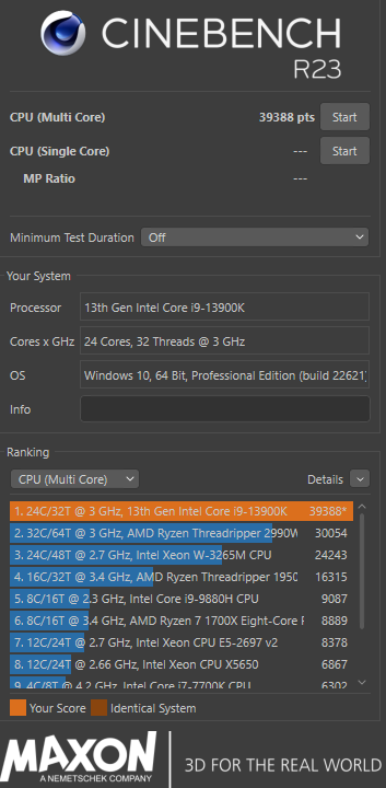 However, if you want real world performance, like what can it do stock, with your mild boosts turned on, things like XMP, multicore enhancements and a general workload. My normal running apps, windows 11 installed, signal, discord, chrome with at least 50 tabs in groups, and all running and then run Cinebench R23, I easily hit 39,288 points. That’s not bad at all.